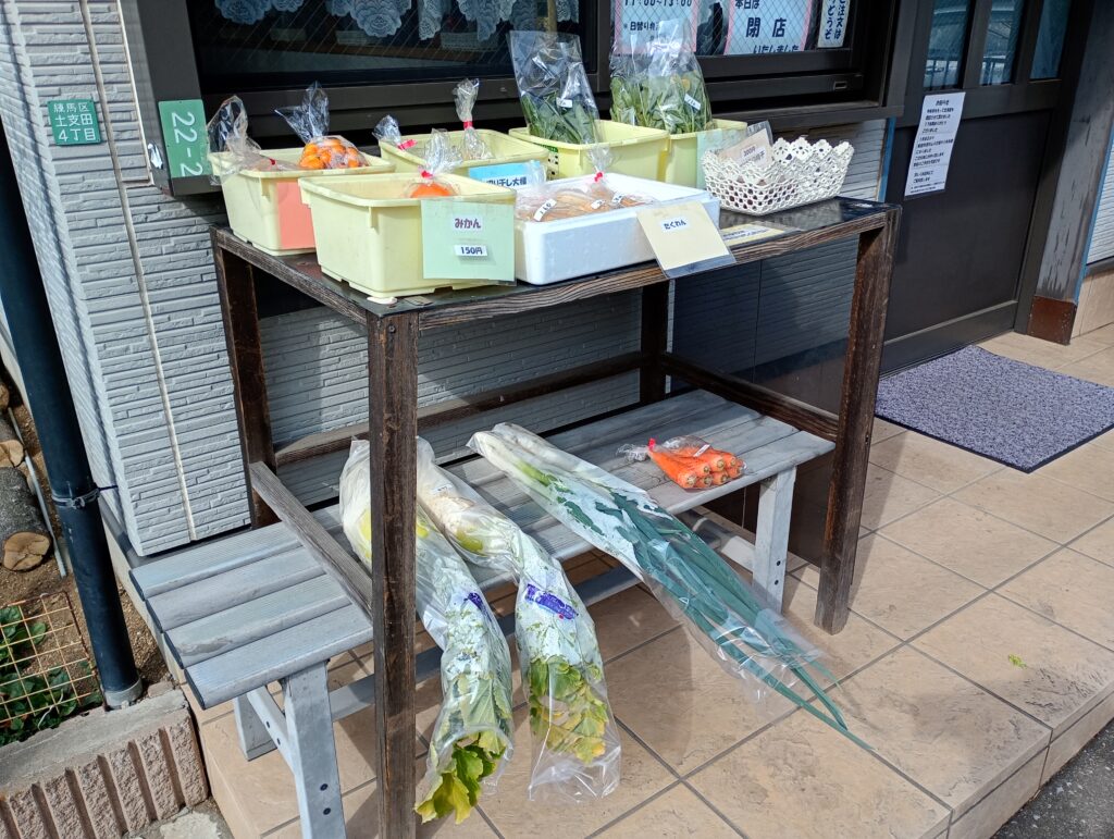 店頭に並ぶ新鮮な野菜と自家製の味