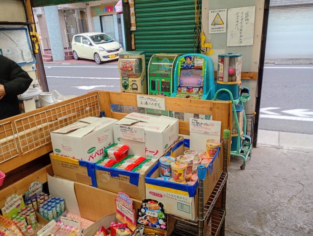 先日、子供と一緒に店を訪ねると、そこには以前と変わらない光景が広がっていました。 棚にぎっしりと並ぶ色とりどりの駄菓子。夢中でゲームに興じる子や、湯気を立てるブタメンを美味しそうにすする子供たち。