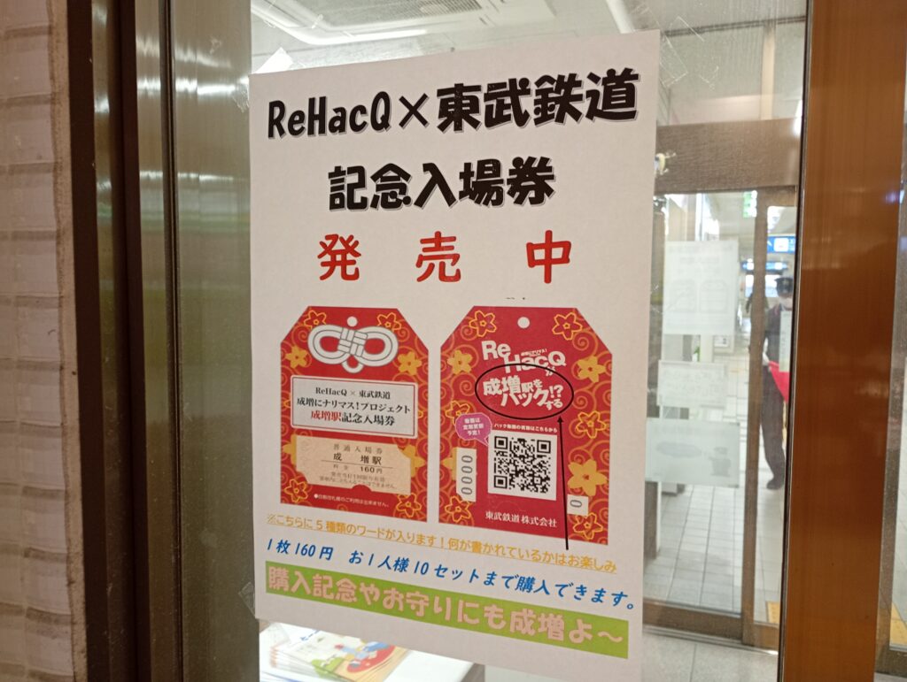 | 発売内容 | 成増駅 160円記念入場券(硬券)+ お守り型台紙 |