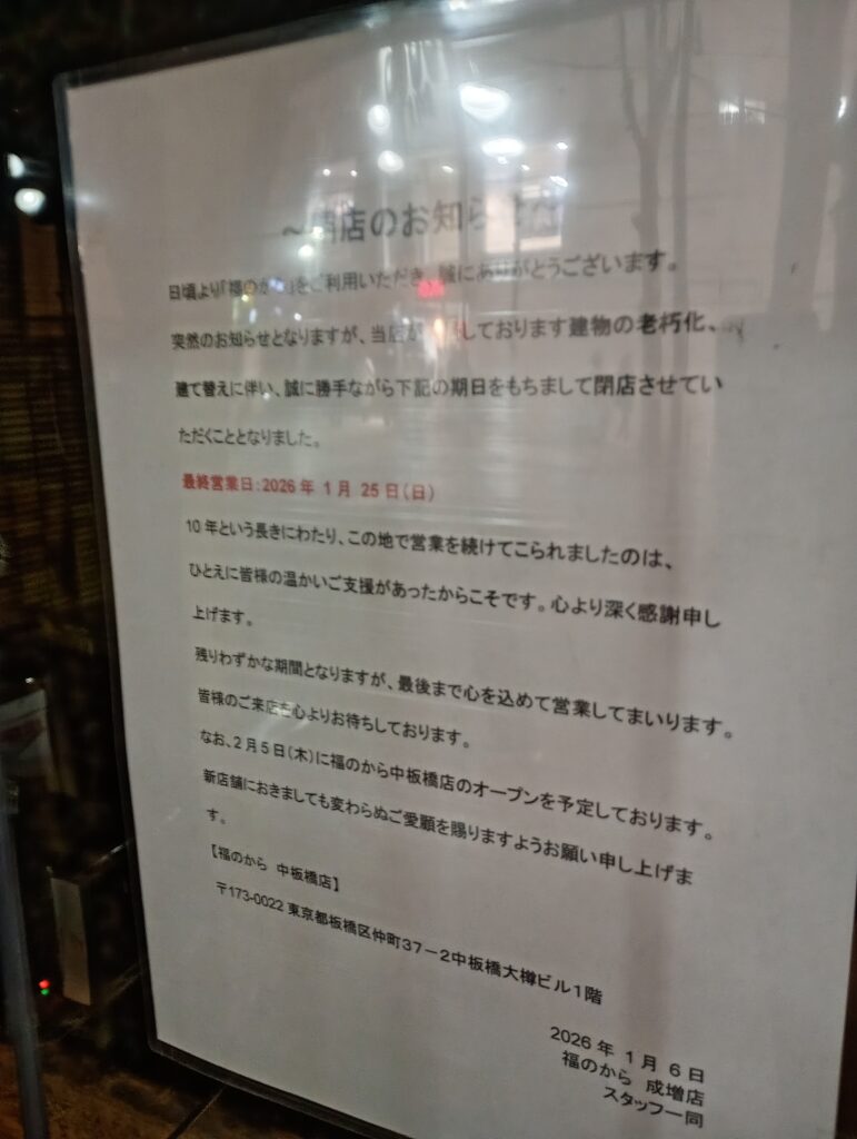- 店舗名: 福のから 中板橋店