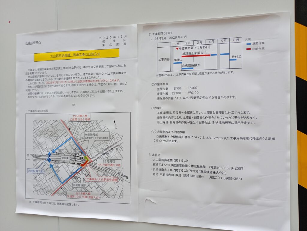 鉄道の高架化事業も大きな節目を迎えました。大山駅のシンボル的存在だった「大山駅前歩道橋(跨線人道橋)」が、2026年1月15日13時をもってついに閉鎖されました。