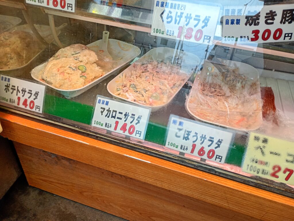 - 揚げ物系: コロッケ(100円)、とんかつ(280円)、アジフライ(140円)といった人気の定番がズラリ。