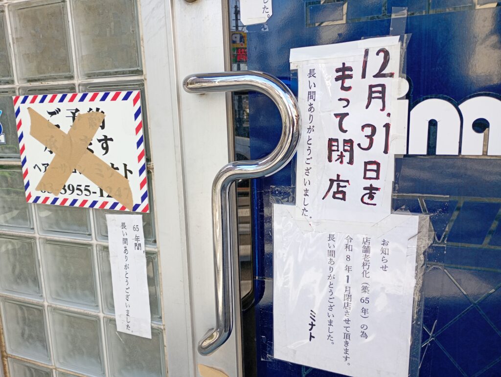 板橋区大山金井町で長年地域住民に親しまれてきた、美容室「みなと」と居酒屋「穂しの」が、2025年12月31日をもって閉店しました。