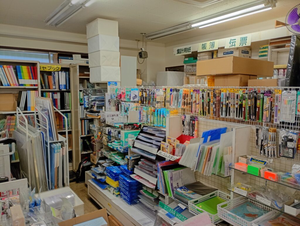 店内を見渡せば、令和の今、平成に流行した「ボンボンドロップシール」が再ブームを起こしています。文房具に混じって、レジ前にはおもちゃが並ぶ懐かしい光景。次に流行るのはミニ四駆かもしれない——そんな風に時代のサイクルを穏やかに見つめる視線は、この街で長く商売を続けてきた自負を感じさせます。