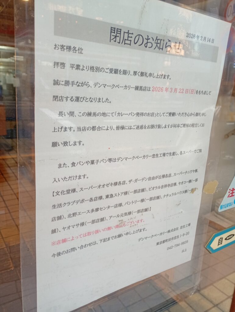 練馬駅を利用する人なら誰もが一度は目にしたことがある、あの香ばしいパンの香り。昭和9年(1934年)の創業以来、92年もの間、練馬の食卓を支え続けてきた「デンマークベーカリー練馬店」が、2026年3月22日(日)をもって閉店することが分かりました。