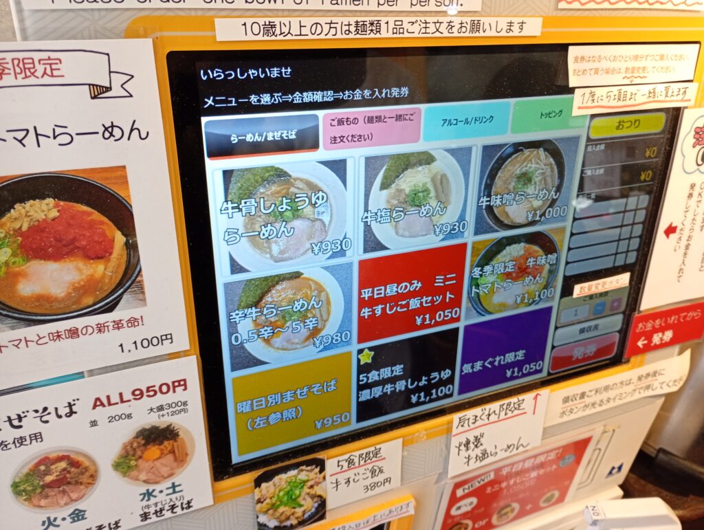 - 備考: 券売機による現金支払い