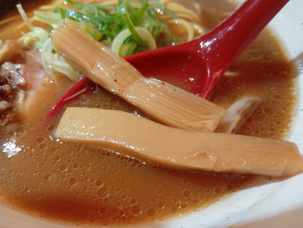 - 極太メンマ: 繊維に沿ってホロリと解ける柔らかさは、まるで「さけるチーズ」のような食感。