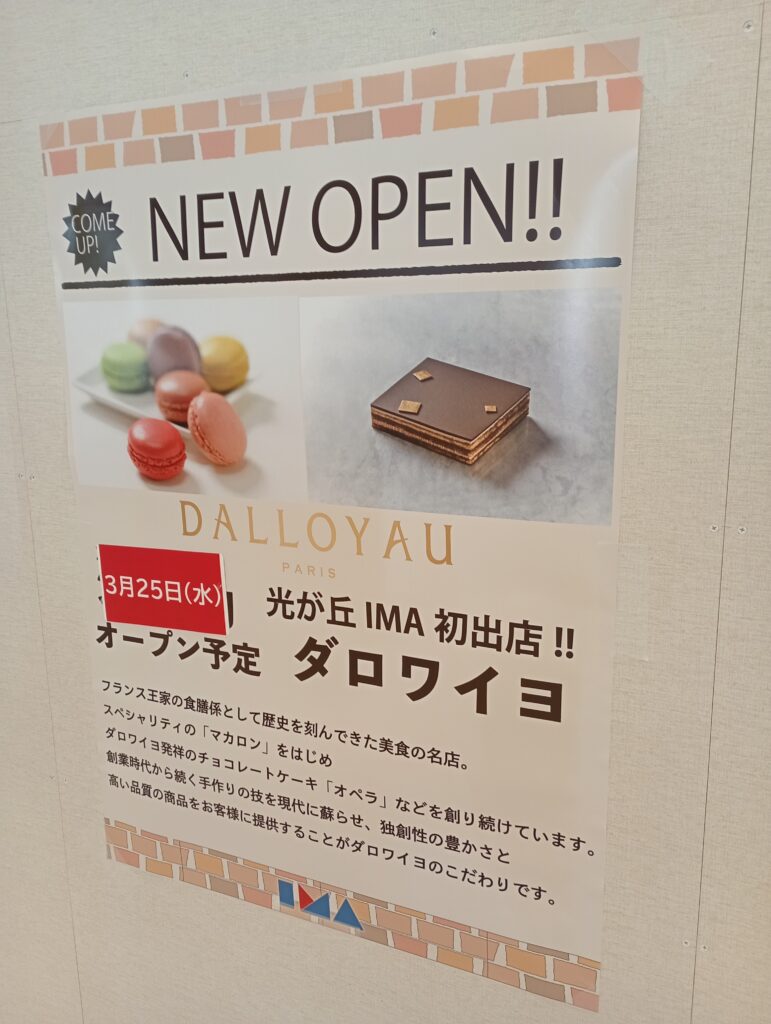- 3月25日(水)オープン:ダロワイヨ(地下1階) フランス王家ゆかりの美食の名店。名物の「マカロン」や、ダロワイヨ発祥のケーキ「オペラ」など、本場フランスの技が光るスイーツが並びます。