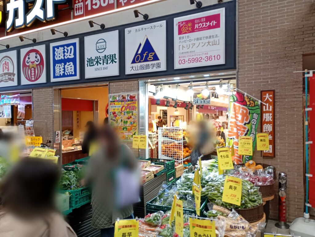 再開発が進む大山駅前から徒歩一分ほどの好立地にだるま市場はあります。