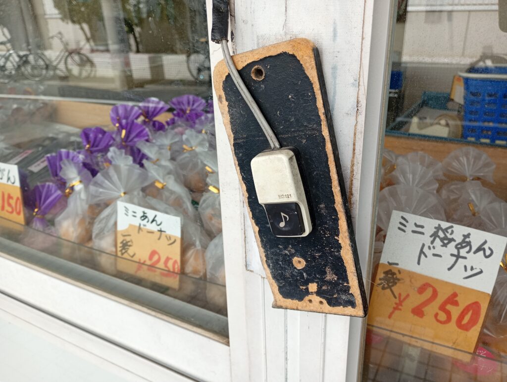 工場の道路側の入口横が販売スペースになっています。あんドーナッツが定番ですが、季節に応じた商品も販売しており、3月は桜のシーズンということもありミニ桜あんドーナツ250円が販売されていました。