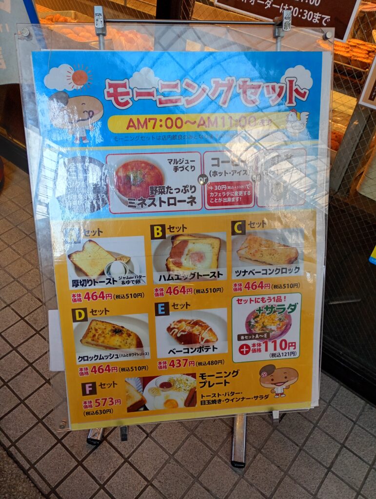 モーニング(7:00〜11:00)はAからFまで全6種類。どれも魅力的で迷ってしまいますが、今回は基本のセットをチョイスしました。