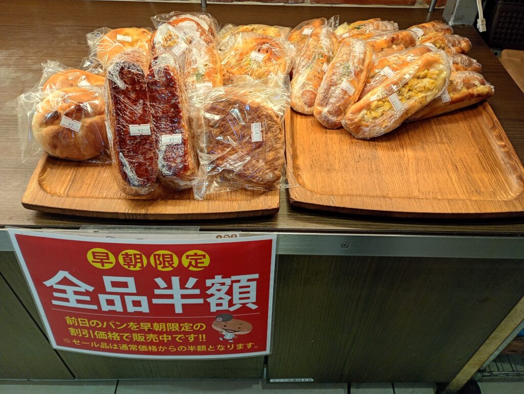 また、SDGsな取り組みとして、前日のパンが半額で販売されているコーナーも。朝一番のお得な出会いがあるのも魅力です。