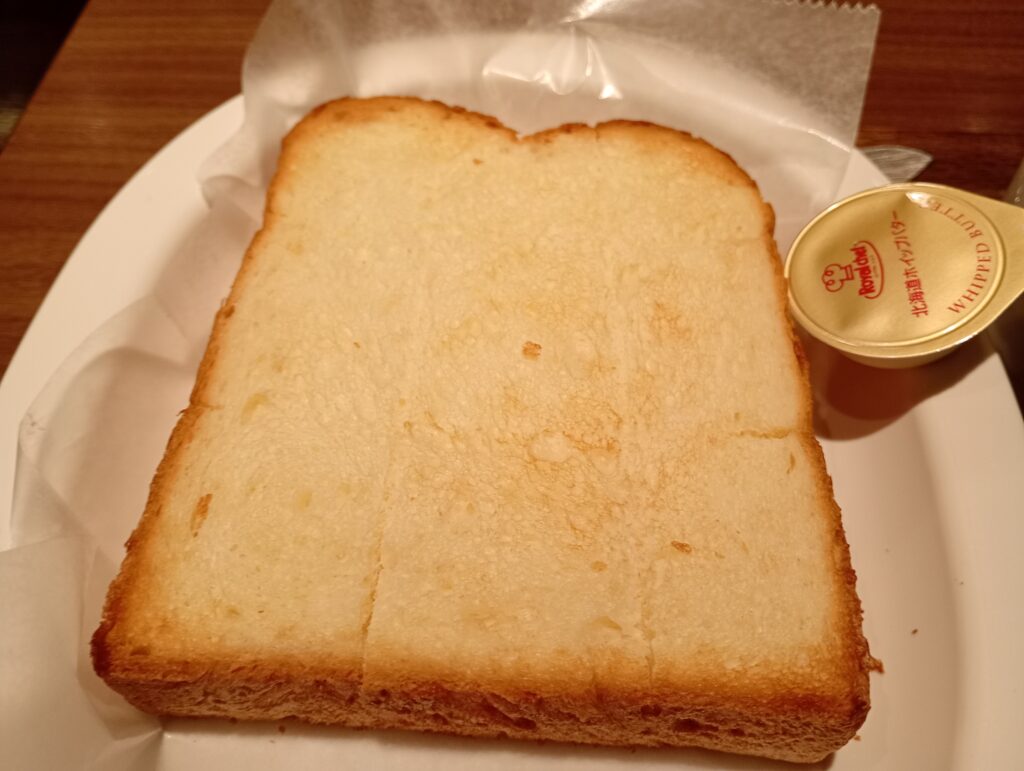 待つこと約3分。呼び出しを受けてレジへ取りに行くと、こんがりと絶妙な色味に焼かれたトーストが。 厚切りならではの「外はサクッ、中はモチッ」とした食感は、パン屋さん直営だからこその贅沢。挽きたてのコーヒーと共に、静かで豊かな時間を過ごせました。