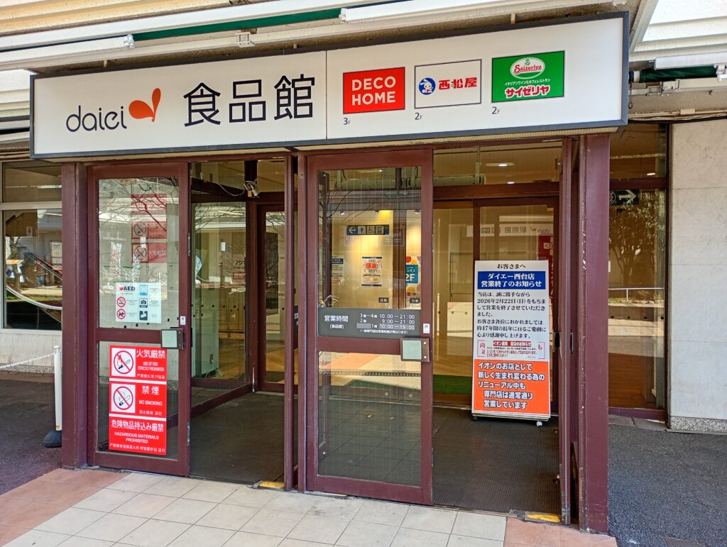 ラーメン二郎西台店のすぐ裏手にはダイエー西台店がありましたが、閉店してしまいましたね。