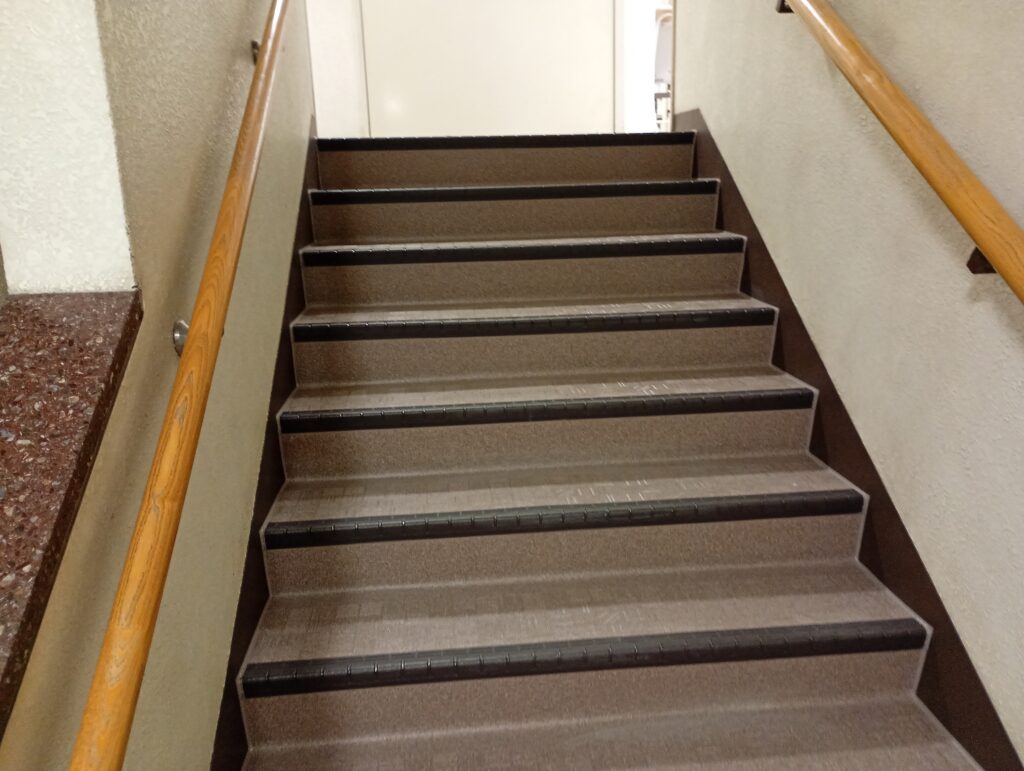3. 気になっていた「階段」が劇的に改善! 個人的に一番「おっ!」と思ったのが階段です。 以前は少し年季が入っていて匂いや汚れが気になっていたのですが、今回の改修で見事にリフレッシュ!滑り止めや手すりもしっかり整備されていて、お年寄りの方や子供たちも安心して利用できる配慮が感じられました。