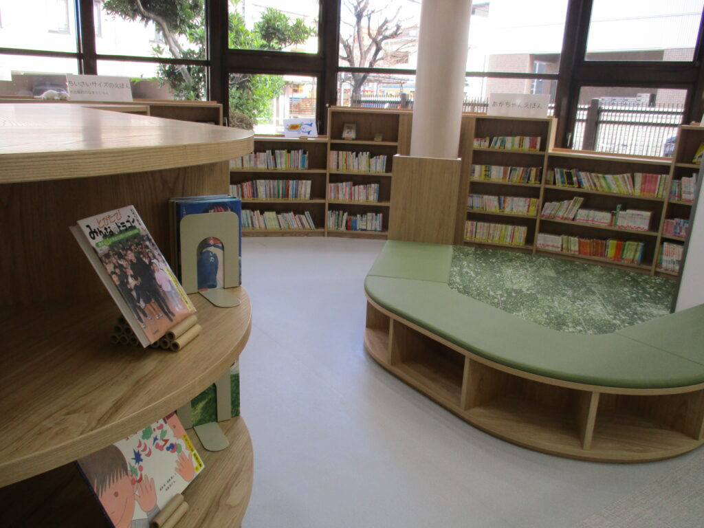 1. 1階:親子連れに嬉しい「くつろぎ空間」 一歩足を踏み入れると、床も本棚もピカピカ!すべて新しくなっていて、本を選ぶのが楽しくなります。 特に素敵だなと思ったのが、子供が靴を脱いで上がれるスペースが新設されていたこと。これなら小さなお子さんと一緒に、家のようにリラックスして絵本を広げられますね。