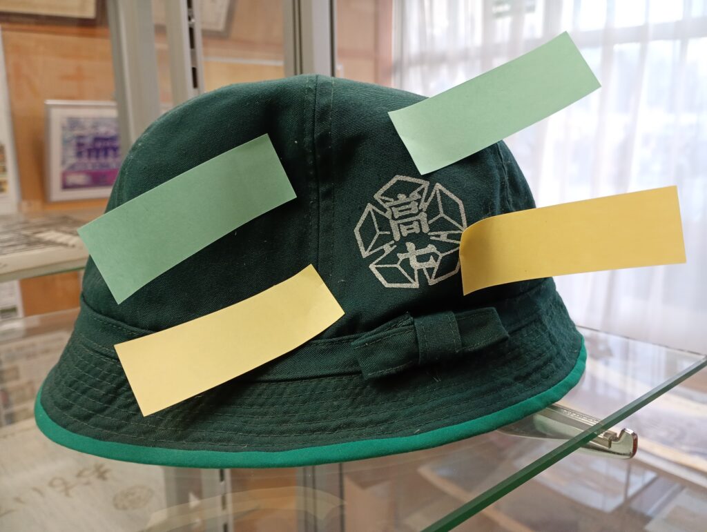 - かつての子供たちが被っていた校帽。