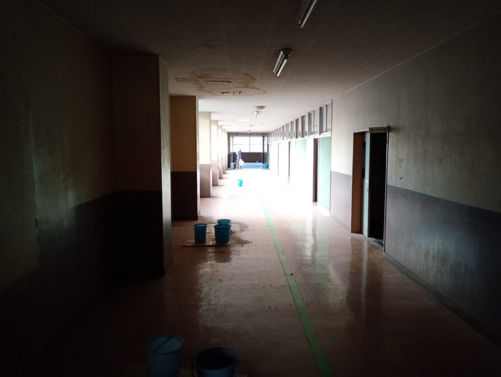 剥がれ落ちた壁の塗装、隆起してボコボコになった床。