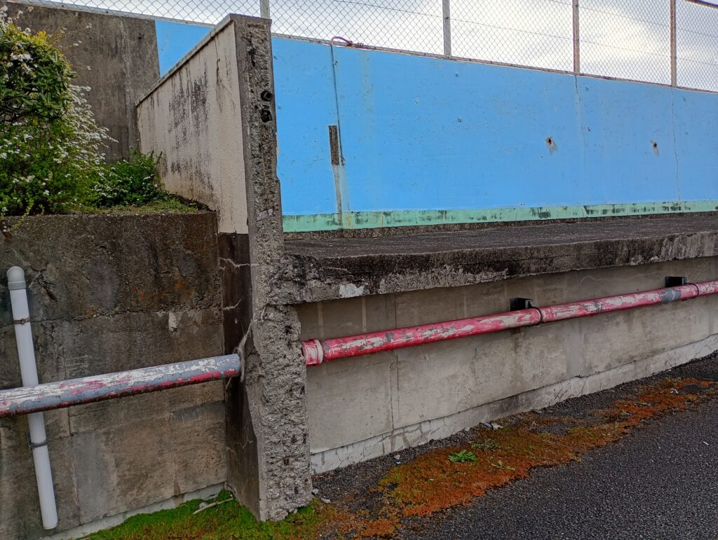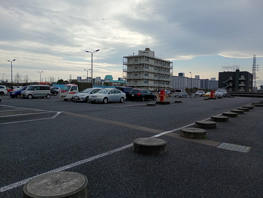 今、小学校の跡地を訪れると、そこは広大な駐車場になっています。 当時の面影を探すと、プール跡地と思われる場所にある「水色の塗料」が、かすかにあの日子供たちが活動していた記憶を繋ぎ止めているかのようです。