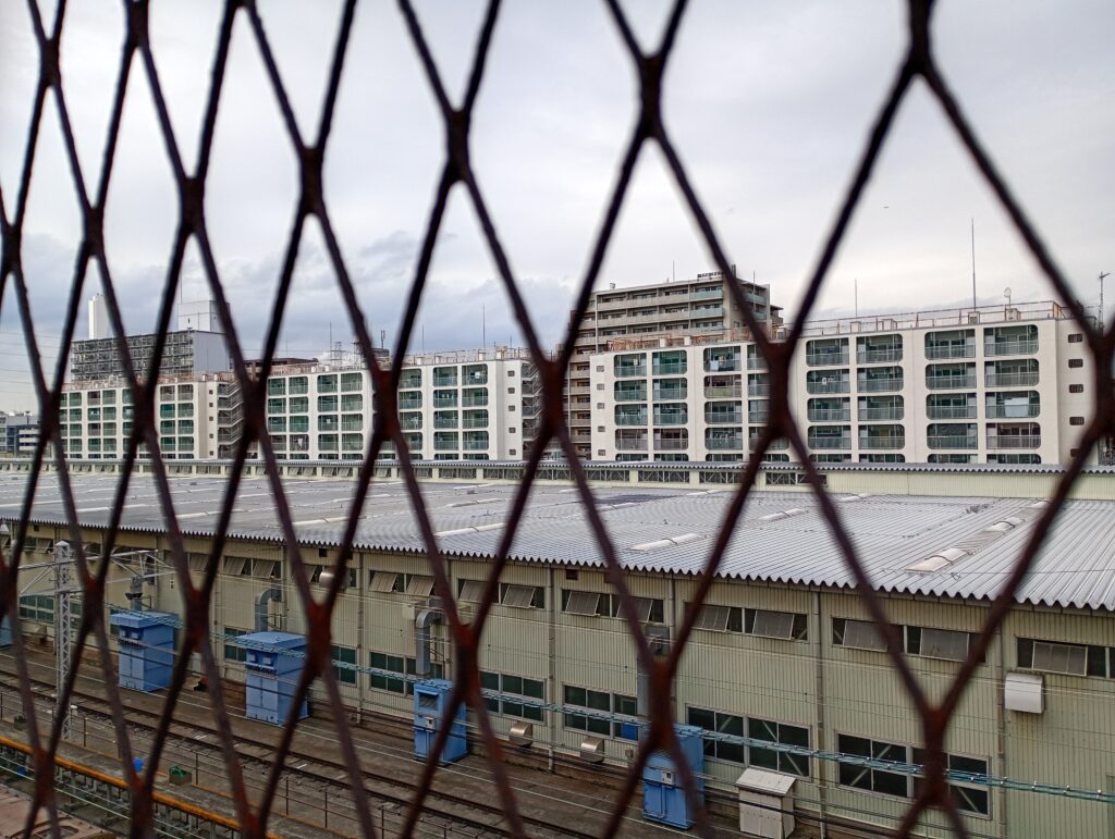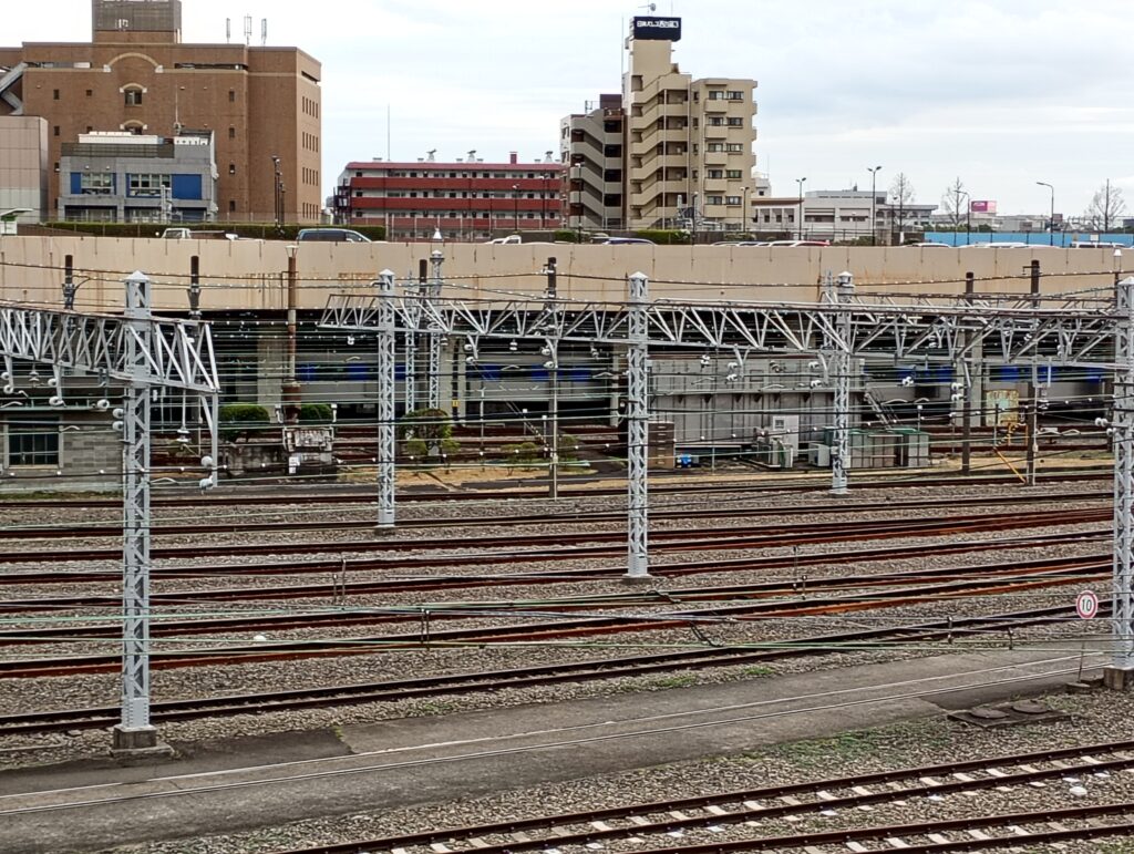 1番線から16番線までの線路が団地の下にすっぽりと収まっている光景は、当時の都市設計の熱量を感じさせます。