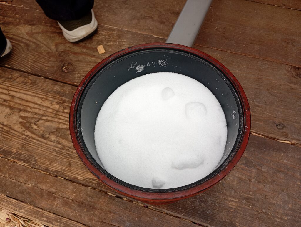 仕上げ: 最後に「ふり塩」をして、埃が入らないよう蓋をします。