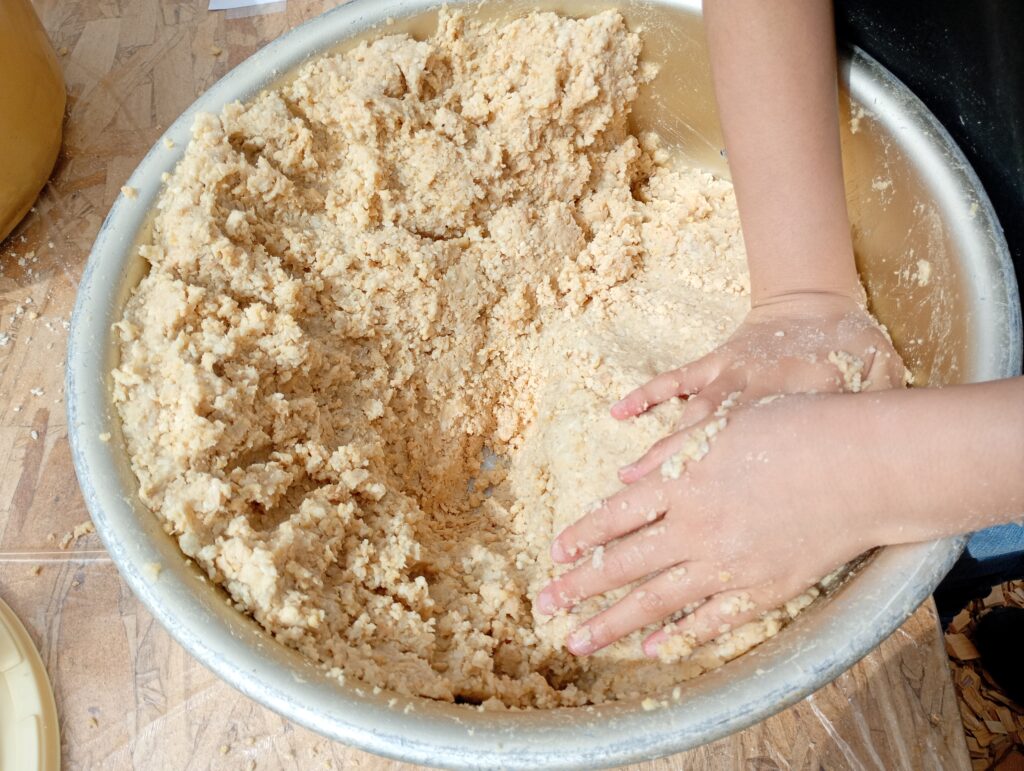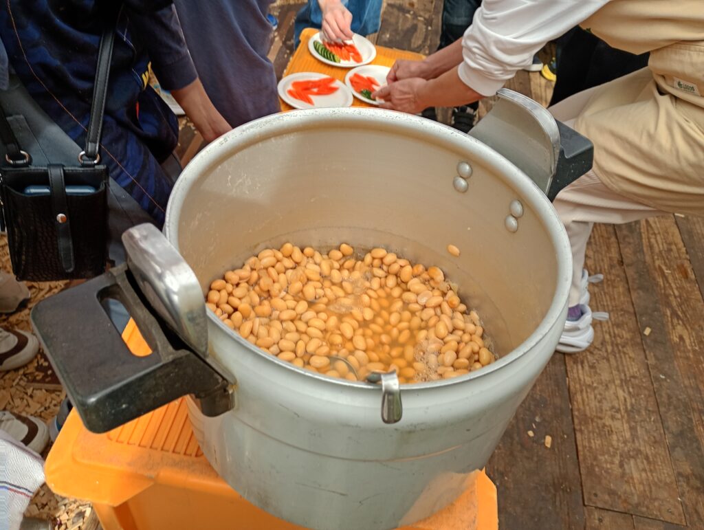 子供と一緒に参加しましたが、大豆を練ったり団子を作って投げ入れたりと、まるで粘土遊びのように楽しそうに作業していたのが印象的でした。
