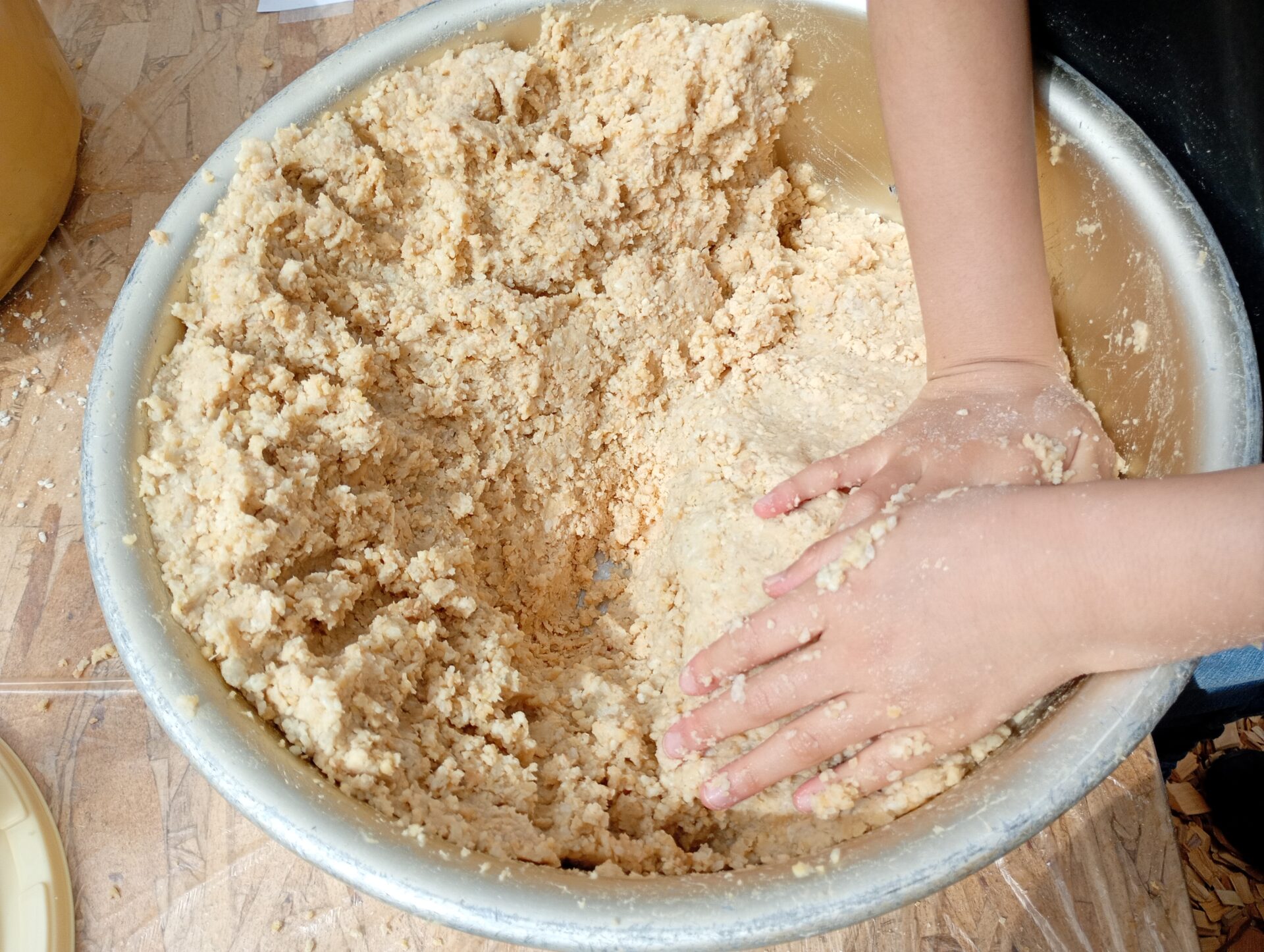 11時にスタートし、13時までたっぷり2時間。計8.4kgという大ボリュームの味噌を、以下の手順で丁寧に仕込んでいきました。