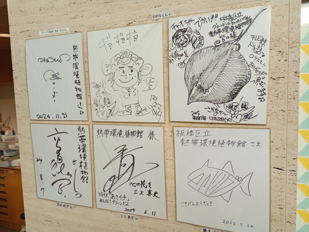 入り口付近には多くの著名人のサインがありました。エイはかなり人気ですよね。