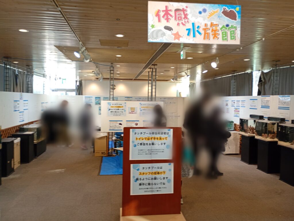 2階の特設会場では、普段なかなか触ることができない海の生きものたちが待っています。