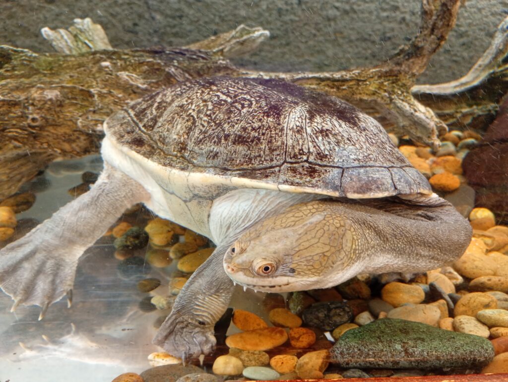 特別展の後は地下の常設水族館へ。 長い首が特徴のナガクビガメや、ゆったり泳ぐ世界最大級の淡水エイは相変わらずの迫力!