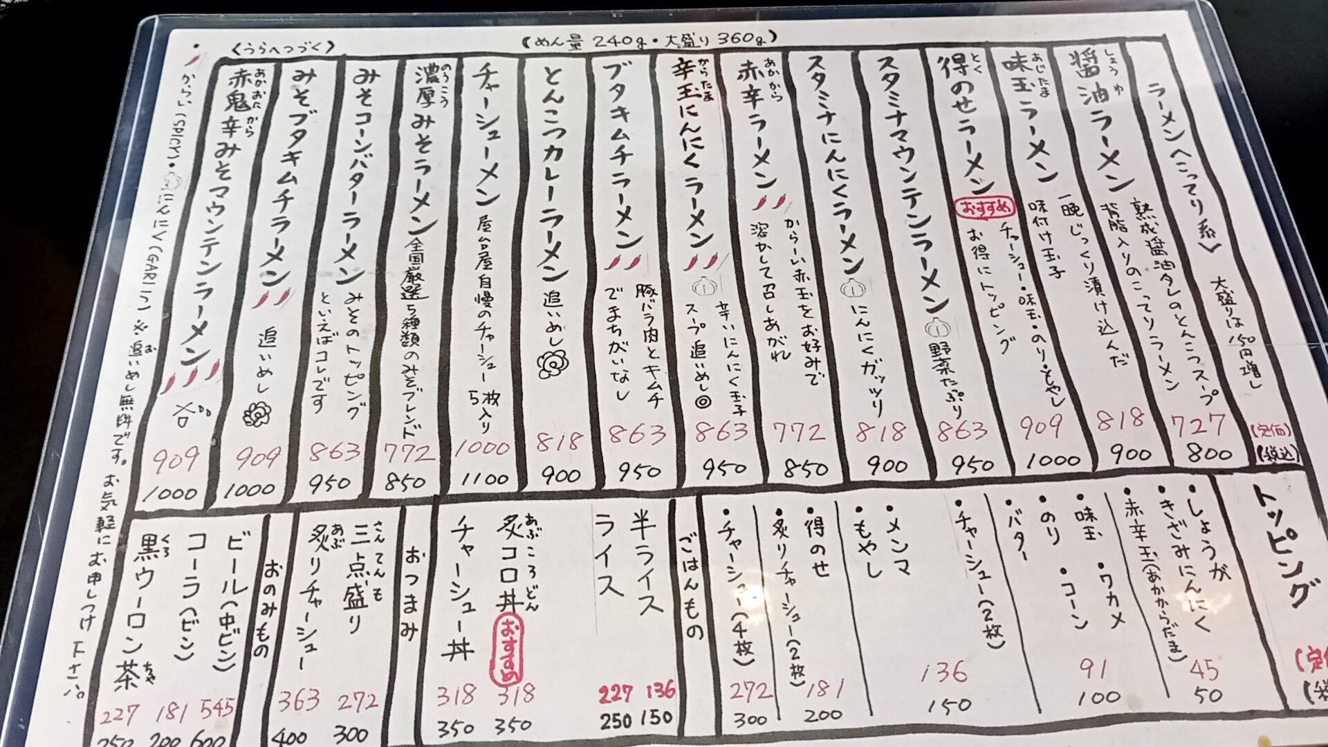 - 大満足のボリューム: 普通盛りで240g、大盛りなら360gと、しっかりお腹を満たしてくれる設定です。