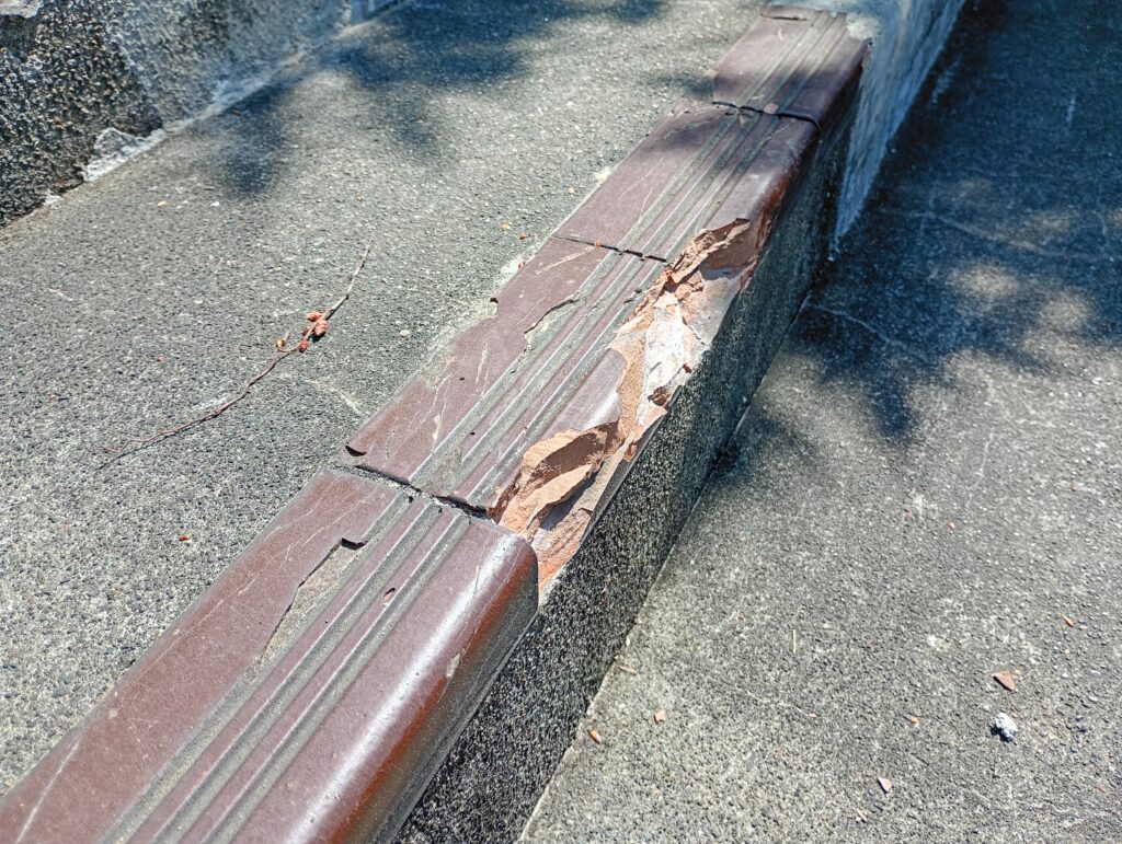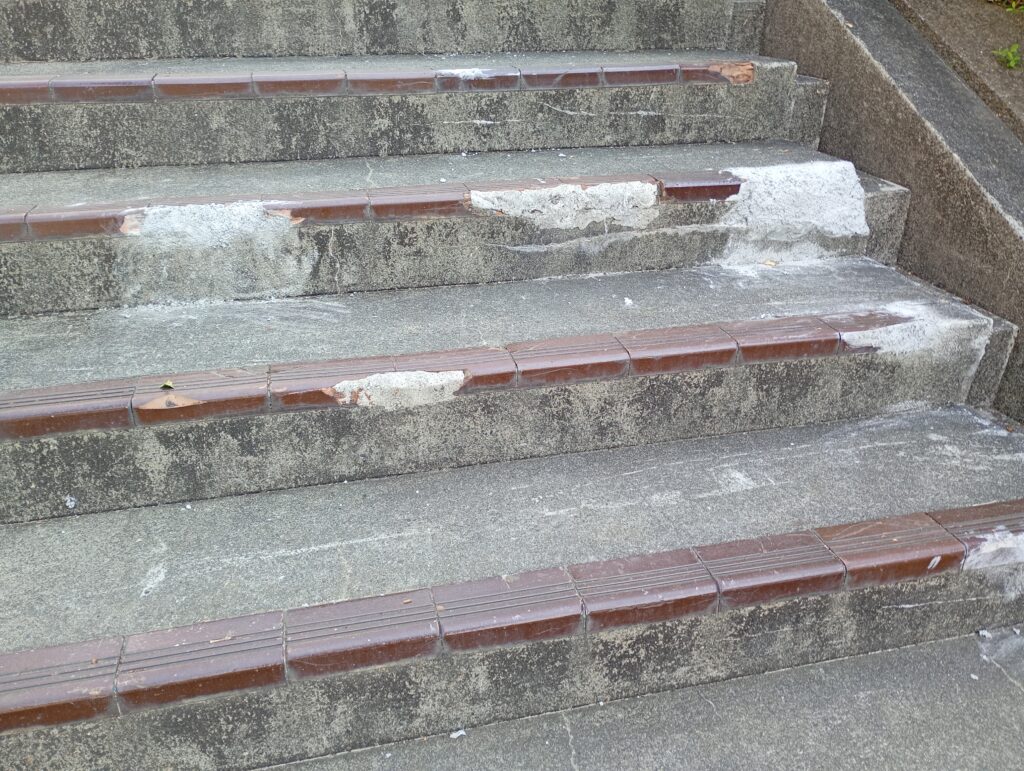- 階段のタイルが削り取られる