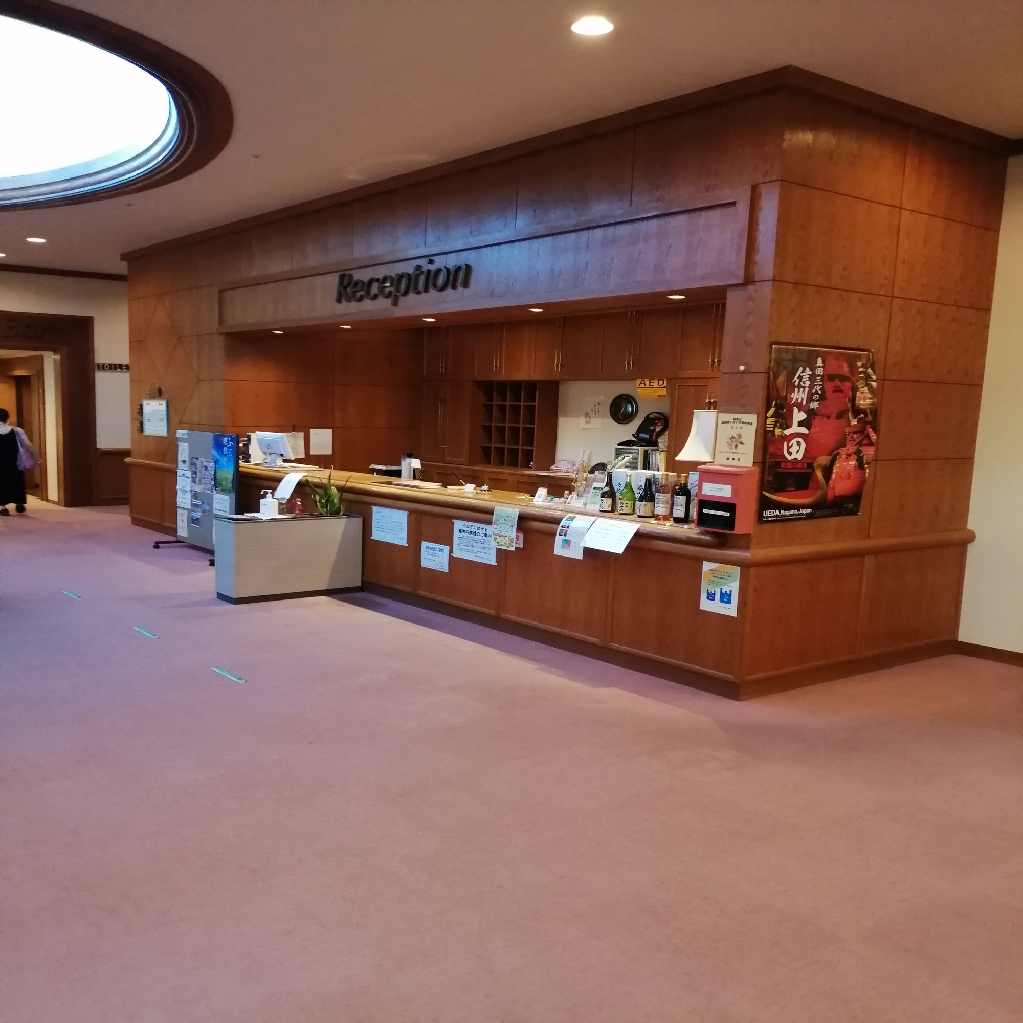 ベルデ武石ですが思ったよりも素敵な施設でした。レセプションはこんな感じなので重厚なつくりになっています。スタッフの方々の対応もとても丁寧です。