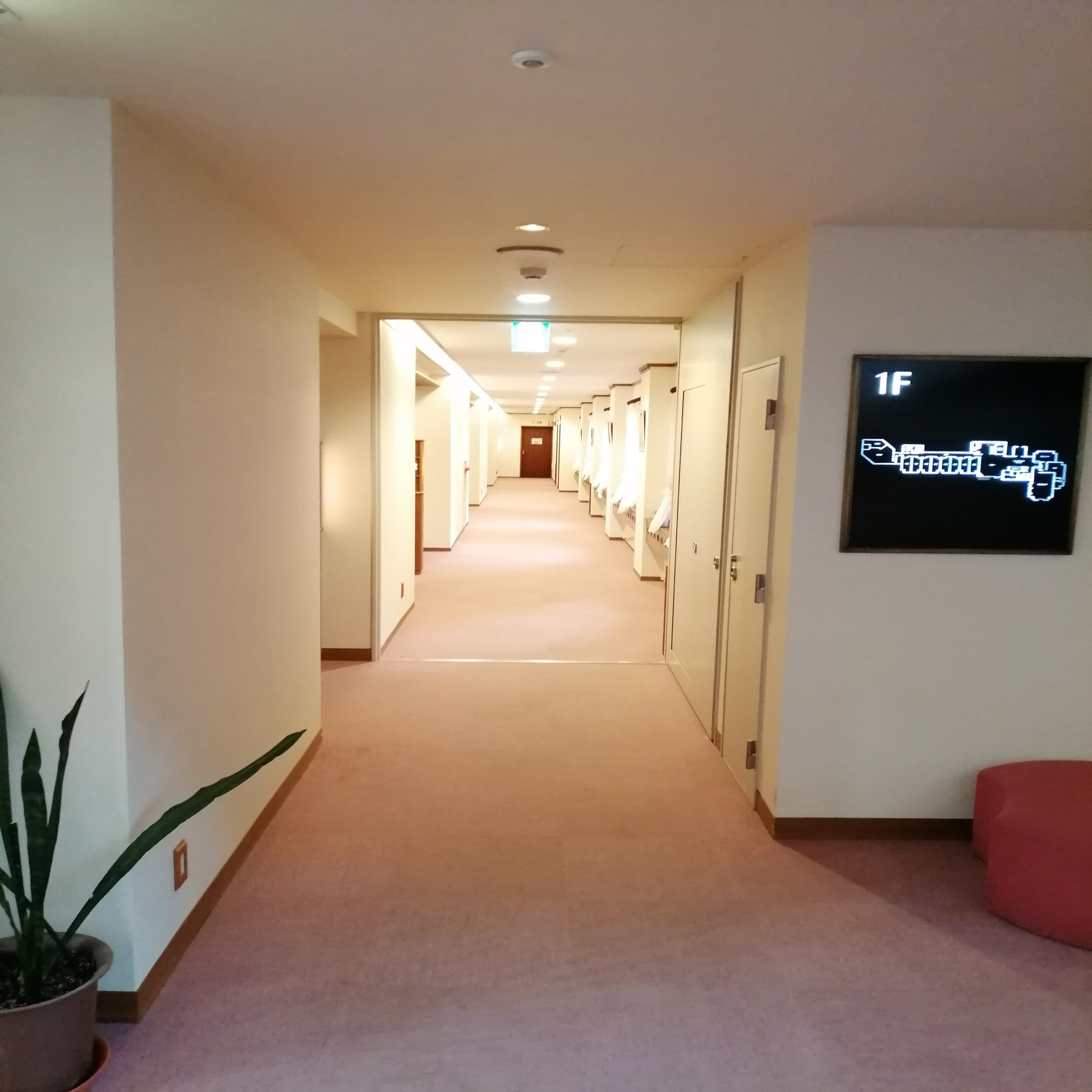 こちらが部屋の入口になります。部屋番号を表示する構造物がとてもいいかんじです。