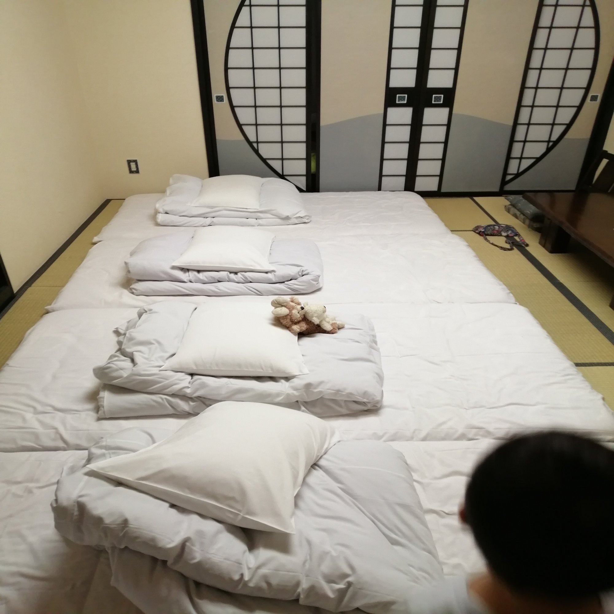 部屋は和室だったのですが8畳程度の部屋でした。布団が4枚ひいてあります。