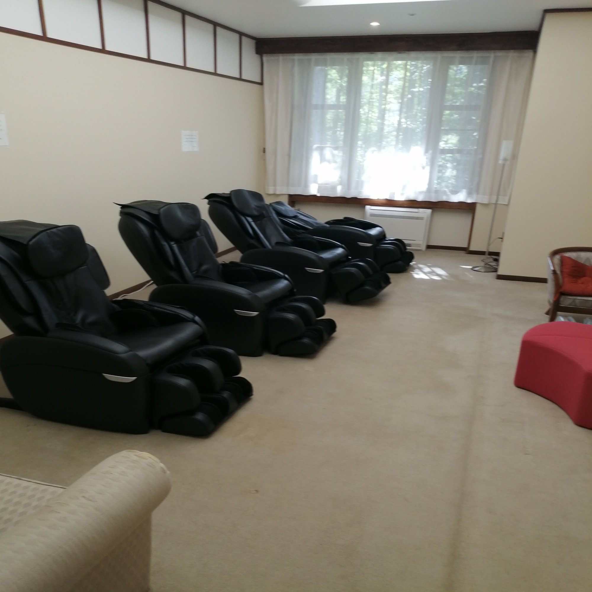 お風呂の横には無料のマッサージルームがあったりします。ちなみにお風呂は翌朝9時まで入れるのでとてもありがたいです。弱アルカリ性の温泉で個人的には体に合ったお湯でまた入りたいと思いました。