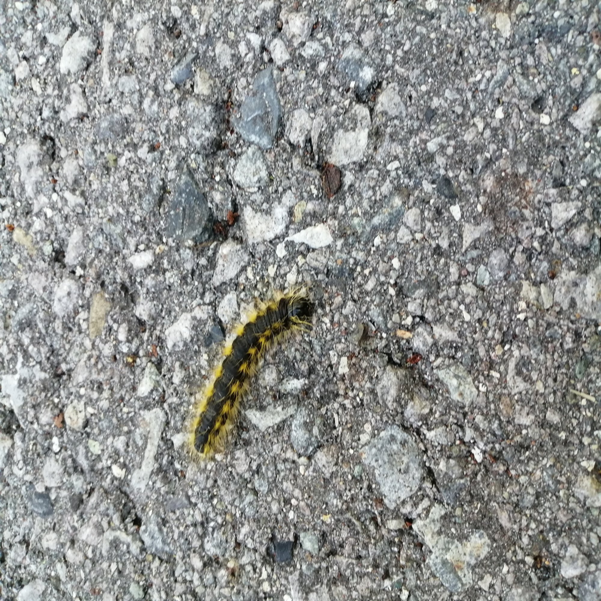こちらは建物の前にいた毛虫です。新緑の桜の木をむしゃむしゃと食べて大きくなっているそうです。足元を見るとすごい量の毛虫が💦