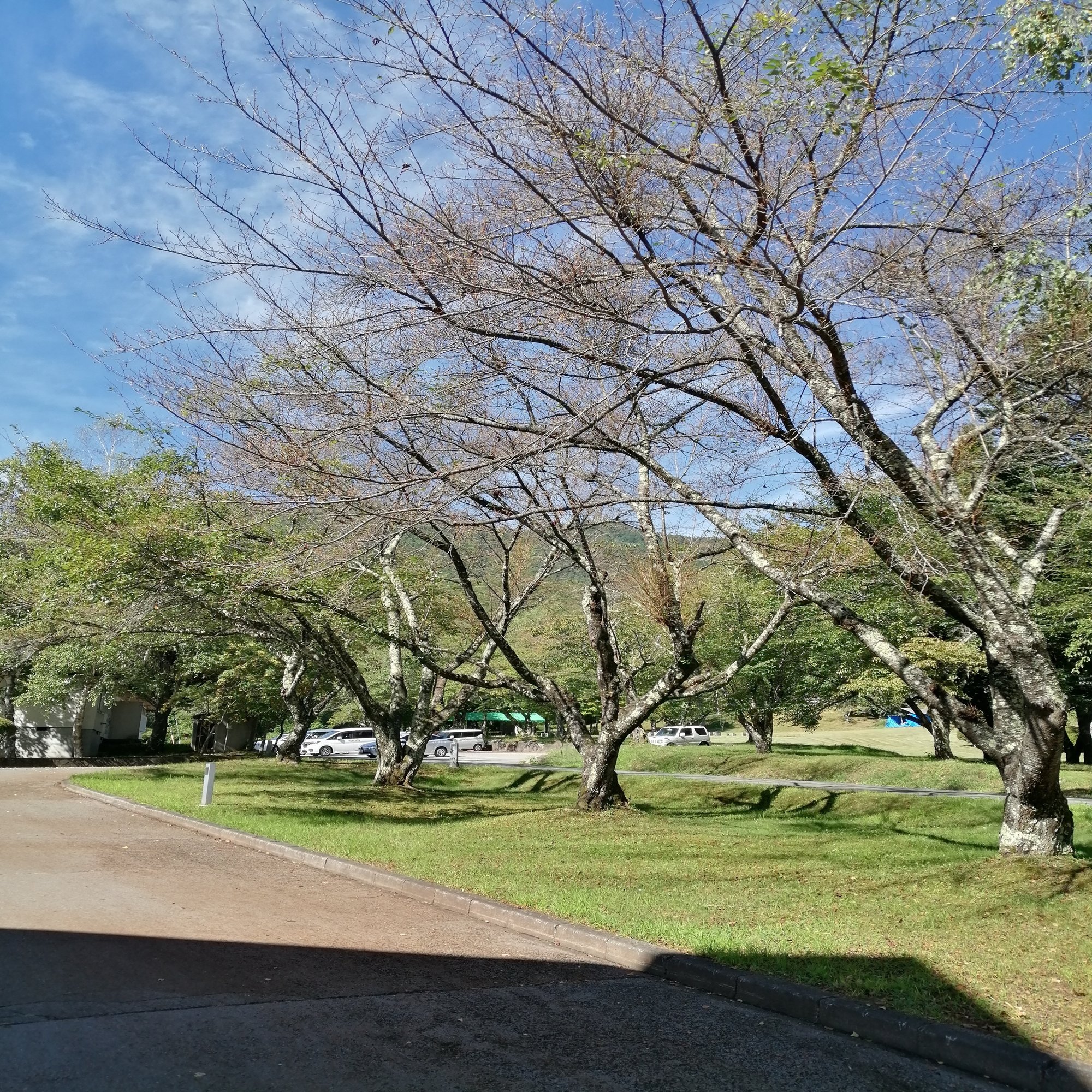 桜の木は葉っぱがほとんど食べつくされ、夏場なのに裸になってしまっています。葉っぱを食べつくしてしまうと次の木に移動するためいったん道路に降りるそうです。そう言った個体が建物の前に大量にたまってしまっているそうです。