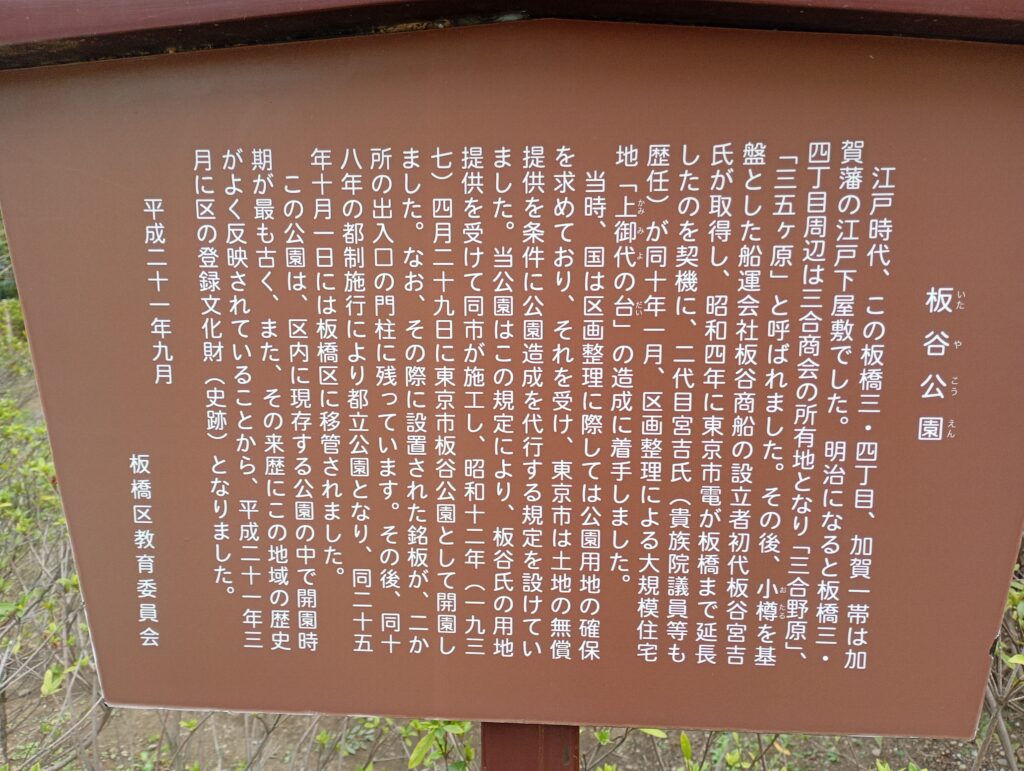 公園の入り口に立つ門柱をよく見てみると、開園当時に設置された銘板が今も静かに残っています。何気なく通り過ぎてしまいそうな場所に、板橋の歩んできた長い月日が刻まれているのを感じ、思わず足を止めてしまいました。