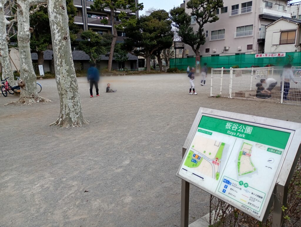 当時の国の指針により、区画整理の際には公園用地を確保する必要がありました。それを受け、板谷氏が東京市へ土地を無償提供したことでこの公園が誕生したのです。公園の名に刻まれた「板谷」という名は、この街の礎を築いた人物への敬意そのものなのですね。
