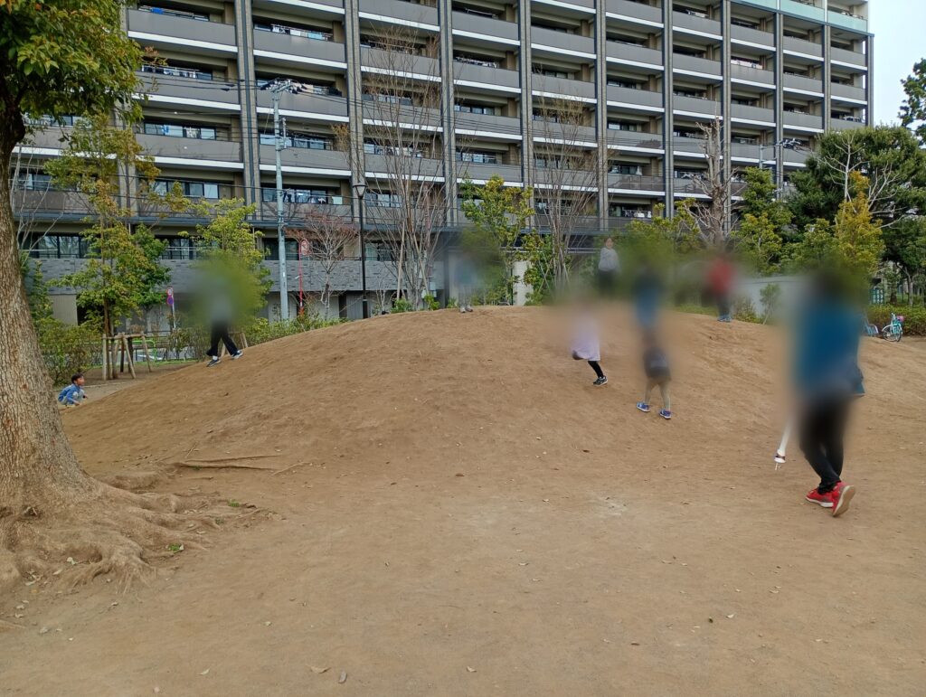 - 象徴的な「お山」: 土が盛られた小高い山があり、子供たちが楽しそうに登っています。高島平などにある「お山の公園」のルーツを彷彿とさせ、遊び心の原点を見るような心地になります。