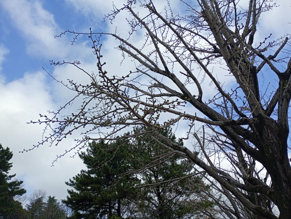 イチョウの木はまだまだ枝が目立ちますがよく見ると若葉が芽吹いています。光が丘公園の春が訪れていますね。