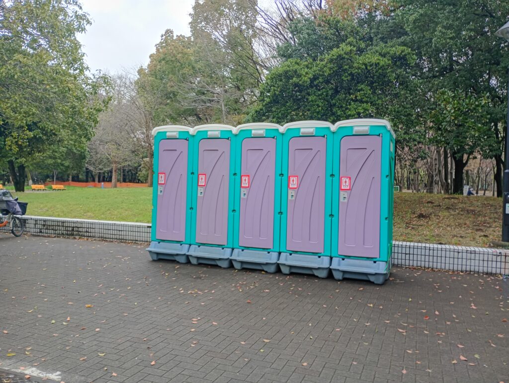 ゴミ捨て場が設置されたり、トイレも仮設トイレが設置されています。