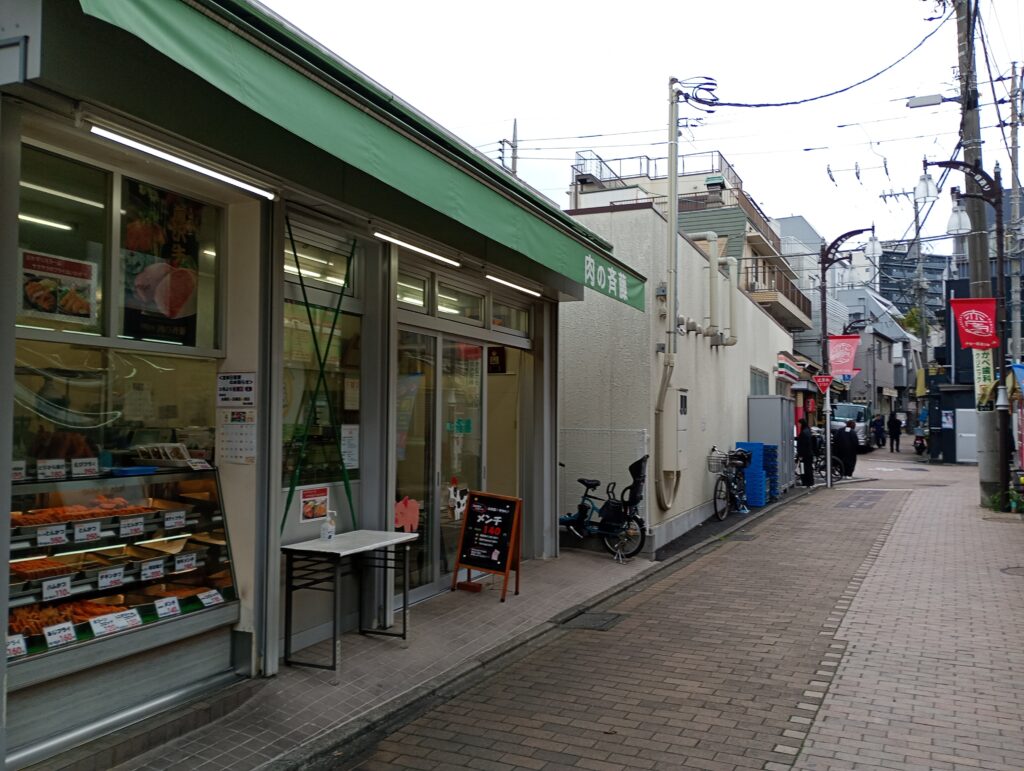 肉の斉藤は下赤塚駅の北口改札を出て3,4分ほど真っすぐ歩いた一番通り商店街の奥の方にあります。