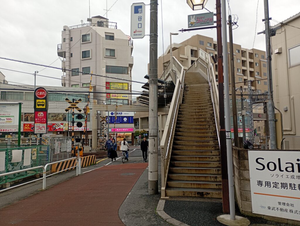 踏切が開かないときは多くの方が利用する歩道橋です。また、休日などには電車好きの方々が電車を眺めたり、撮影をしていることも。
