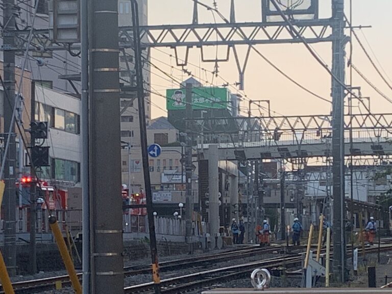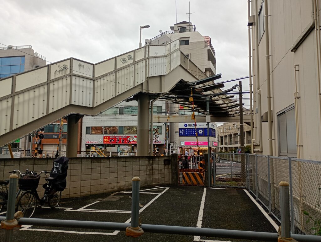 ここの歩道橋は2025年8月に女性が欄干から落下防止の板の上に飛び乗り電車の運行が大幅に遅延することもありました。