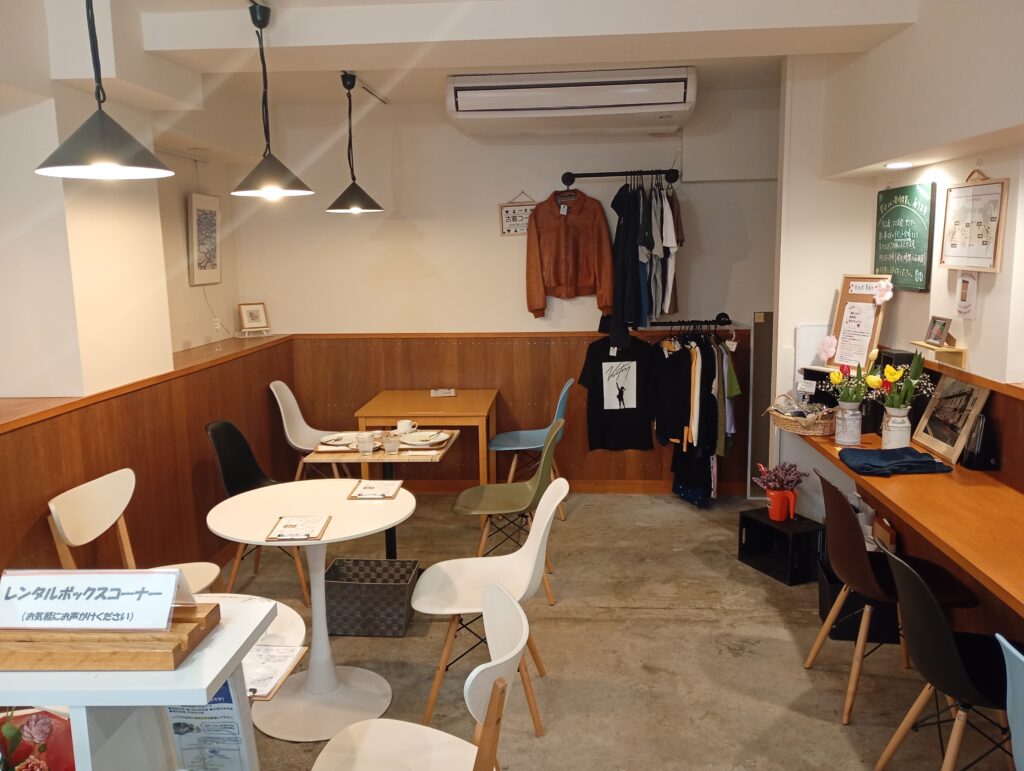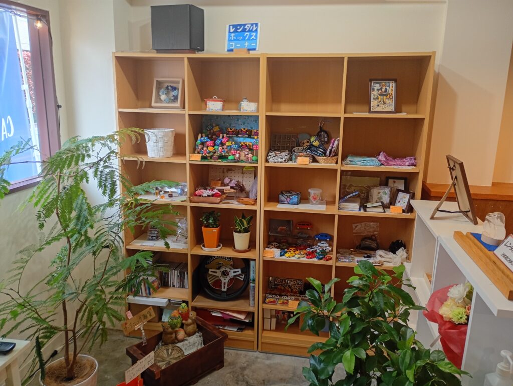 レンタルボックスコーナーがあり、ハンドメイド作品や雑貨の展示・販売も行っています。ママ友会や女子会にもピッタリの雰囲気かもしれませんね。