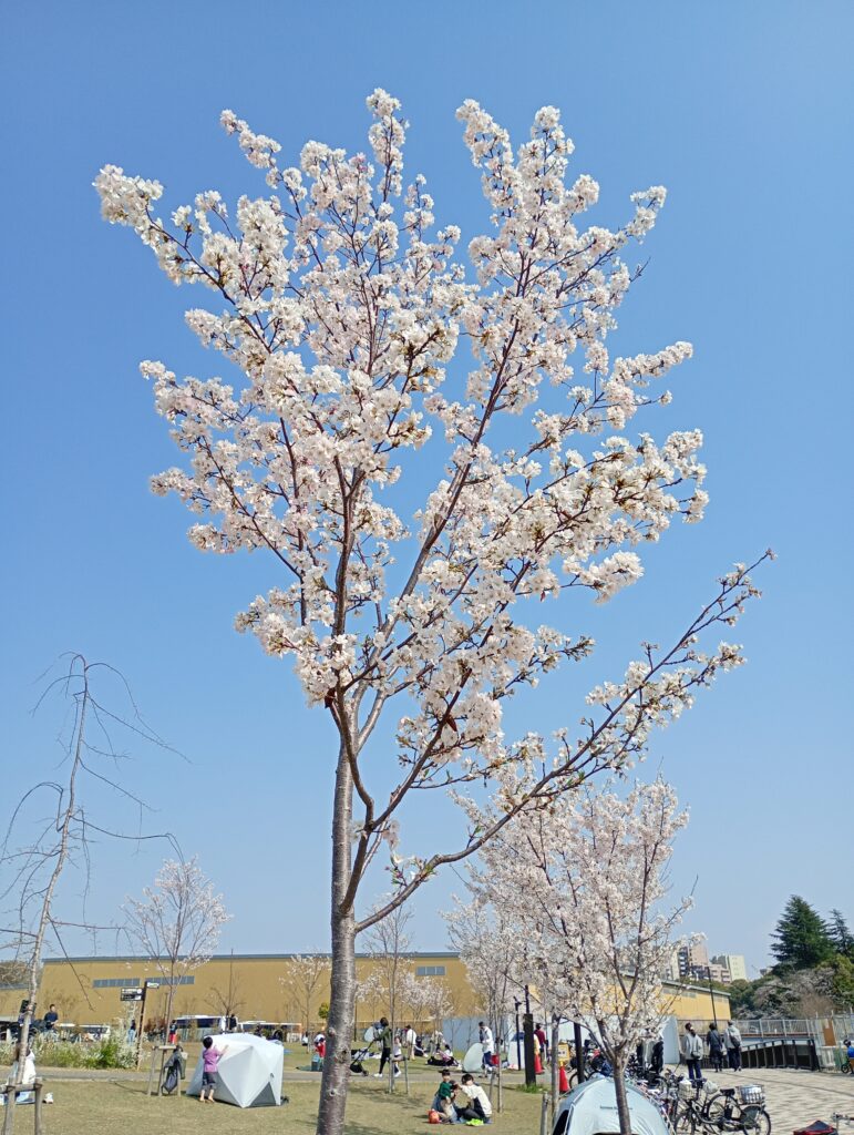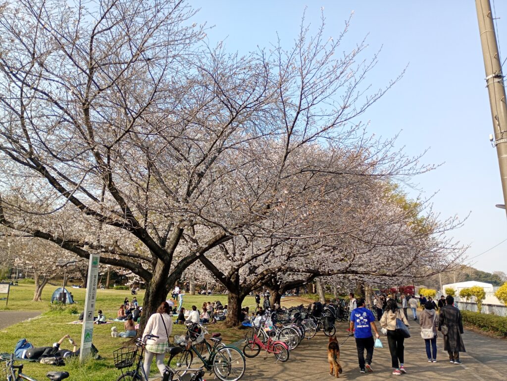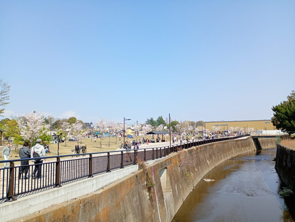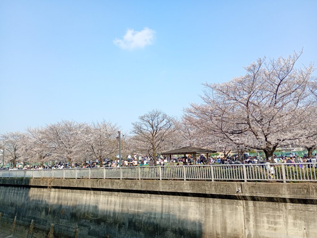 歴史の重みを感じながら歩を進めると、城北中央公園に到着。ここも多くの花見客で賑わっていました。