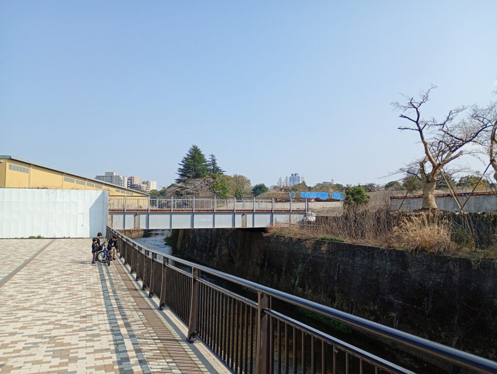 環八通りが近づくと一旦桜並木は途切れますが、そこを越えてしばらく進むと、旧としまえん跡地に整備された練馬城址公園に到着します。
