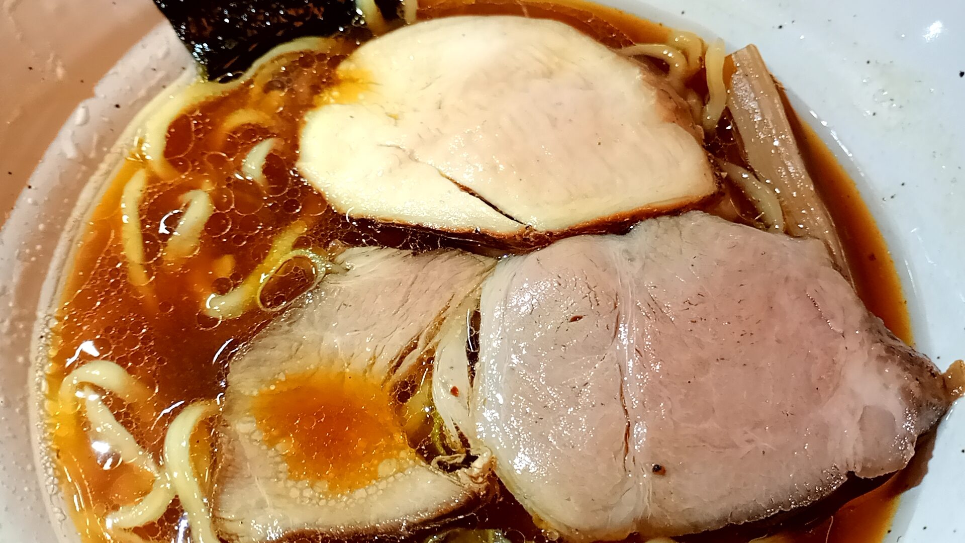 チャーシューは豚と鶏の2種類。しっとりとした質感で、丁寧な仕事ぶりが伝わります。ネギ、メンマ、海苔といったシンプルな構成が、スープの旨味をより際立たせています。